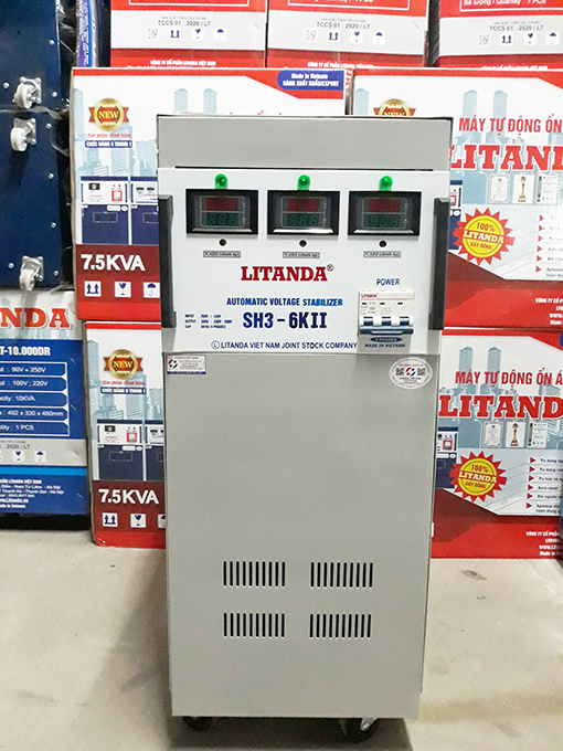 Máy ổn áp lioa 3 pha Litanda 6KVA 6KW SH3-6KII được sản xuất theo đơn đặt hàng. Máy có điện áp vào 260V-430V và điện áp ra 380V 3 pha với sai số từ 2-3%. Sản phẩm được cam kết 100% dây đồng, chạy êm, tiết kiệm điện.