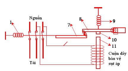 2. Nguyên lý điện từ : Ta sẽ dựa theo nguyên tắc điện từ. MCCB sẽ chứa 1 cuộn dây điện từ giúp tạo ra 1 trường điện từ khá nhỏ khi dòng điện chạy qua MCCB. Trong quá trình hoạt động bình thường này, điện từ sẽ được tạo ra bởi cuộn dây điện từ. Tuy nhiên, 1 khi xảy ra lỗi ngắn mạch trong mạch, 1 dòng điện lớn sẽ bắt đầu đi qua điện từ. Từ đó, 1 trường điện từ mạnh sẽ được sinh ra để hút thanh ngắt và mở các tiếp điểm.