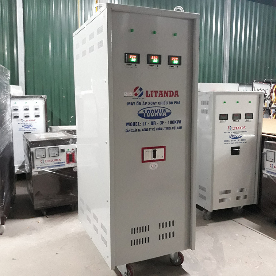 Máy ổn áp 3 pha 100KVA Litanda dải điện áp vào 260V – 430V của công ty cổ phần Litanda Việt Nam được sản xuất bằng 100% dây đồng, bảo hành 4 năm. Sản phẩm được nhiều các đơn vị nhà nước, công ty, doanh nghiệp lớn tại các khu công nghiệp yêu thích sử dụng!