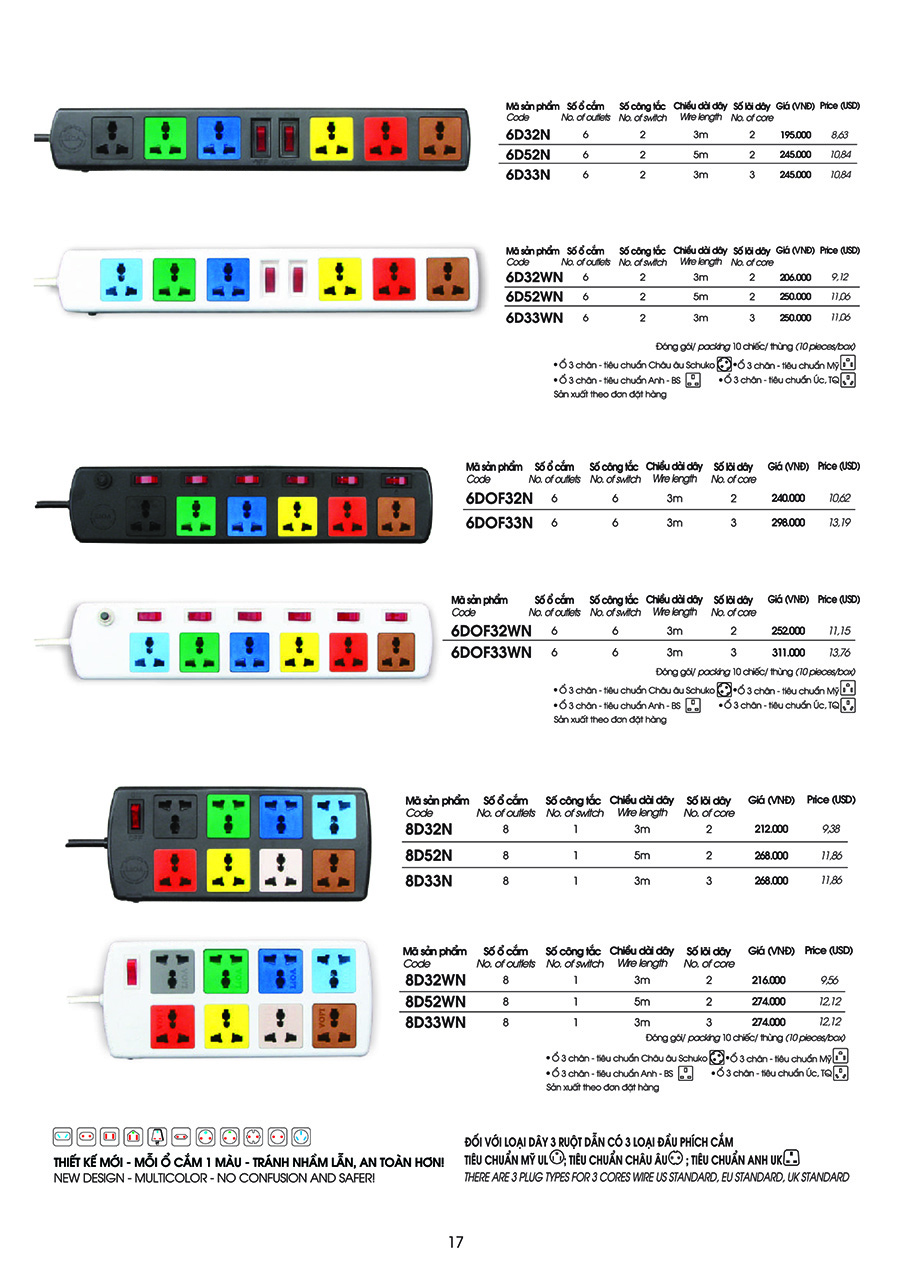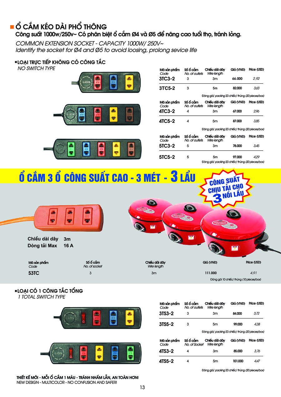 Ở bảng báo giá ổ cắm Lioa 2022 được niêm yết công khai đồng thời là thông số kỹ thuật chung cho từng loại, kích thước, số ổ cắm, số lõi dây,…Tất cả quy cách được đảm bảo giống như hình ảnh được niêm yết.