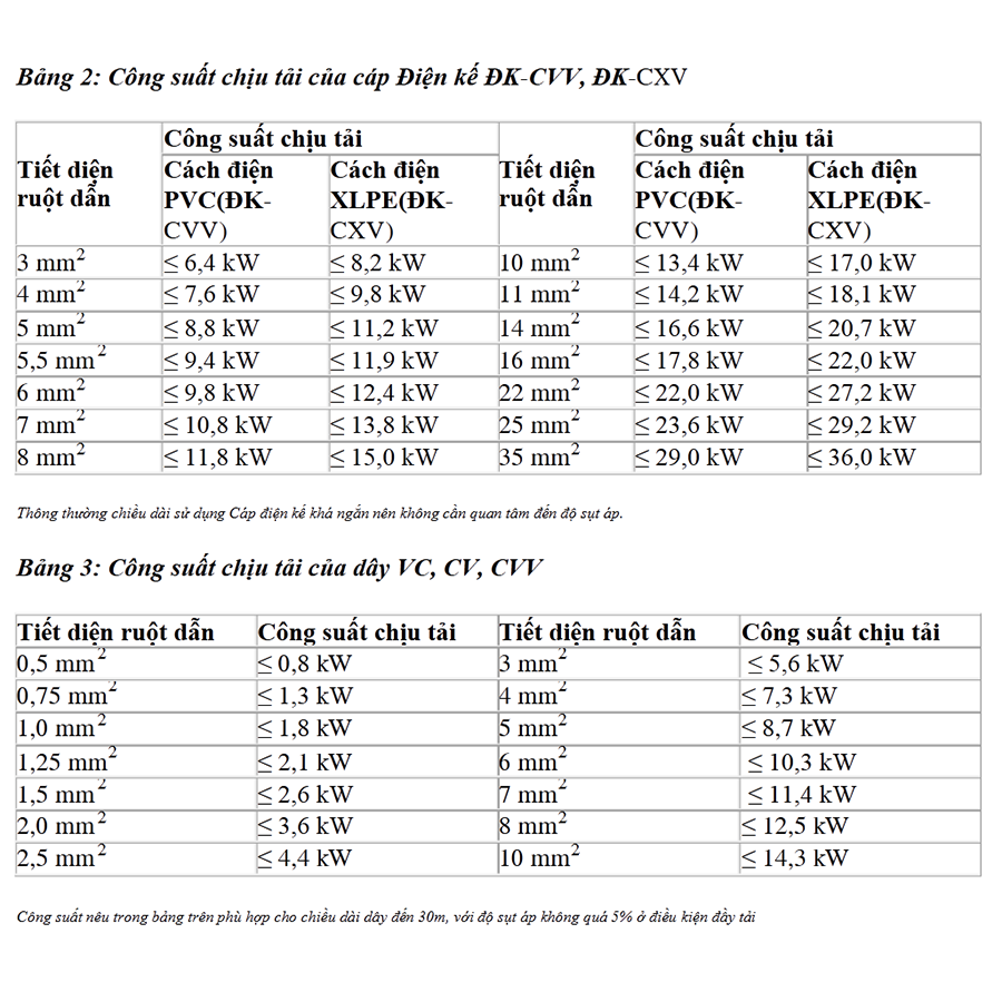 Dưới đây sẽ là những gợi ý để mọi người tham khảo và có cái nhìn tổng quát nhất trong bảng chọn tiết diện dây điện theo công suất: