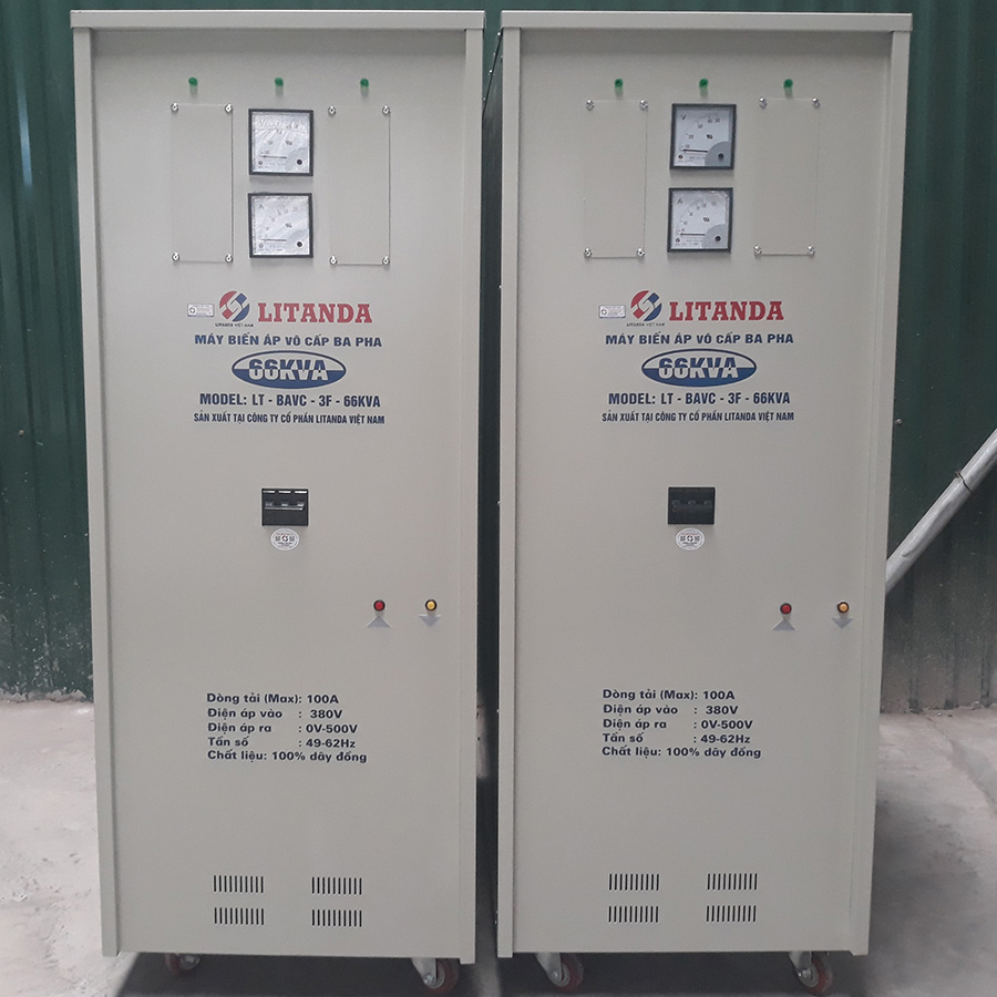 Máy Biến áp vô cấp Lioa Litanda chính hãng được sản xuất 100% bằng dây đồng. Máy chạy êm, cách ly tốt, kiểu dáng đẹp. Các loại biến áp vô cấp 3 pha có gắn bánh xe, tiện cho việc di chuyển.