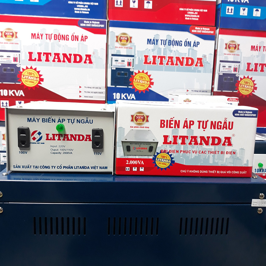 Bộ đổi nguồn Litanda 2000VA dây đồng chính hãng đổi nguồn từ 220V sang 110V và 100V. Sản phẩm chuyên dùng cho các thiết điện nhập khẩu, đồ điện nội địa Nhật, Mỹ, Hàn Quốc…. Do công ty cổ phần Litanda Việt Nam sản xuất với 100% bằng dây đồng dẫn điện tốt. Nên không lo tốn điện, tăng tuổi thọ cho sản phẩm.
