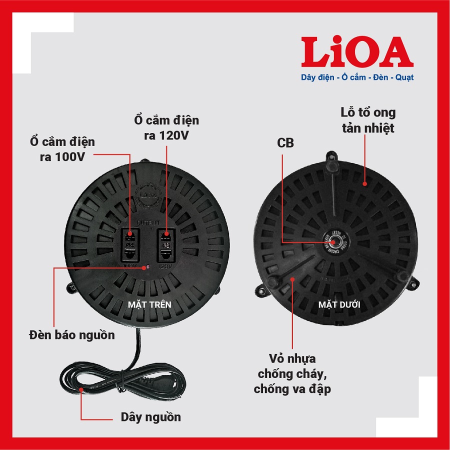 Biến áp tự ngẫu Lioa 1 pha hay còn gọi là cục biến áp điện Lioa. Sản phẩm có chức năng đổi nguồn 220V sang 100V và 120V. Sản phẩm có công suất từ 200VA, 400VA, 600VA 1000VA, 1500VA, 2000VA, 3000VA.