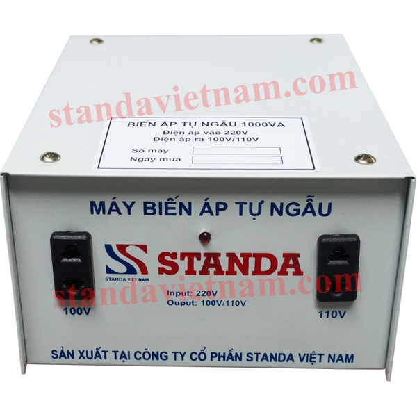 Bộ đổi nguồn 1KVA Standa dùng để đổi nguồn từ 220V sang 100V hoặc 110V. Với công suất 1KVA có thể sử dụng cho một số thiết bị nhẹ điện như nồi cơm điện, tivi, quạt điện,... Sản phẩm có cấu tạo là một chiếc biến áp tự ngẫu. Được thiết kế nhỏ gọn, kiểu dáng đẹp, được sản xuất tại Công ty Cổ phần Standa Việt Nam và phân phối bởi Tổng kho Standa.
