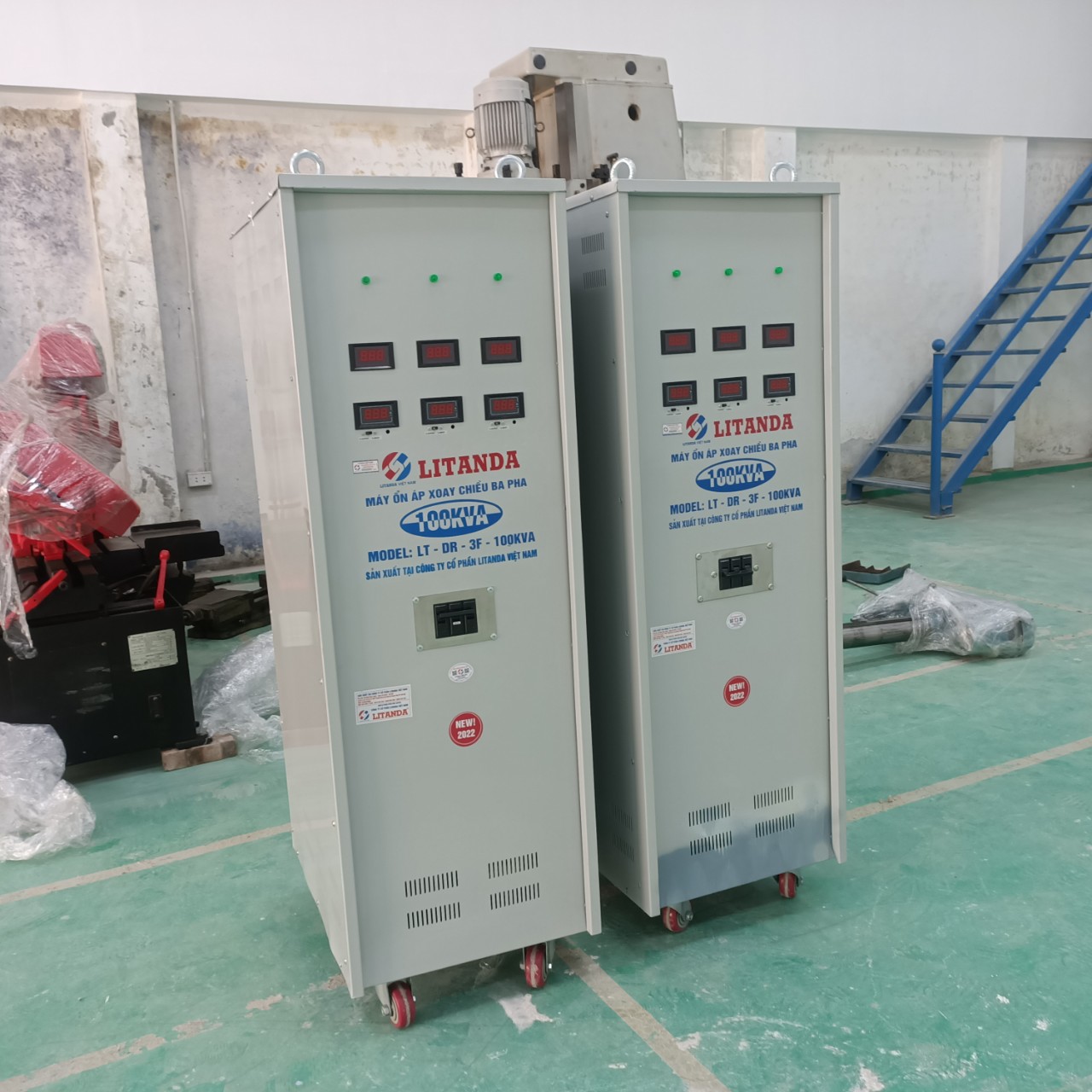 Máy ổn áp 100KVA 3 pha Litanda 100KW có chức năng ổn định hoặc cải thiện điện áp cấp cho các thiết điện khác. Sản phẩm đời mới được trang bị thêm đồng hồ Led điện tử kết hợp chức năng báo điện áp đầu vào. Giúp mọi người kiểm tra điện áp vào, ra linh hoạt.