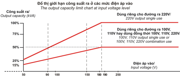 Rất nhiều khách hàng chưa hiểu về vấn đề này. Dưới đây là biểu đồ của điện áp đầu vào và công suất tương ứng. Chúc các bạn lắp được ổn áp như ý và an toàn.