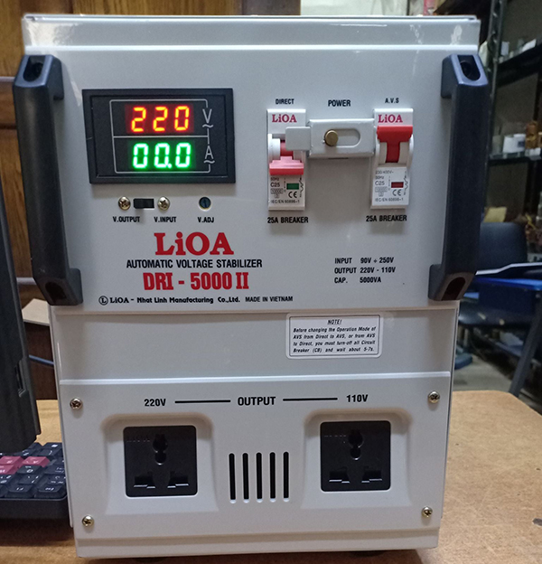 Máy ổn áp LiOA Nhật Linh 5KVA hay LiOA 5KW, LiOA 5 ký, LiOA 5Kg…là cách gọi chung của máy ổn áp LiOA 5KVA 1 pha. Đây là loại ổn áp có công suất nhỏ hiện không còn được sử dụng nhiều bởi không đáp ứng được phần lớn nhu cầu.