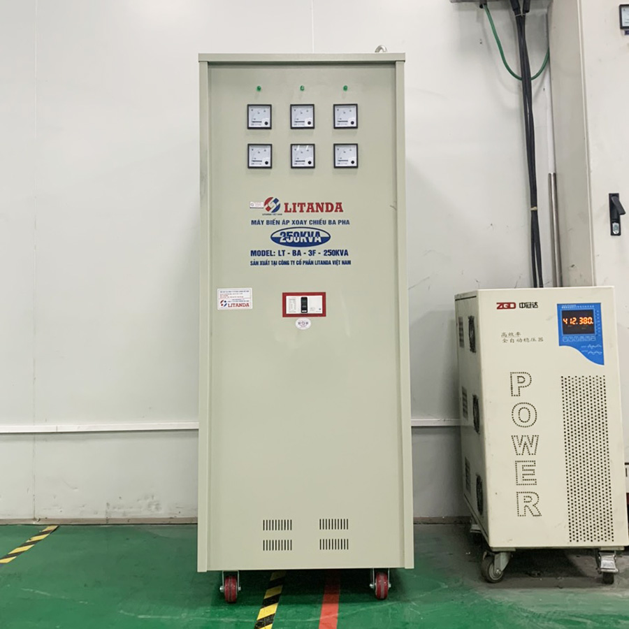Biến áp LiTanda 250KVA 3 pha hay còn gọi là biến áp hạ thế 380V 3 pha xuống 220V 3 pha và 200V 3 pha. Sản phẩm được sử dụng nhiều cho máy móc nhập khẩu từ Nhật Bản, Hàn Quốc, Đài Loan, Hoa Kỳ,...