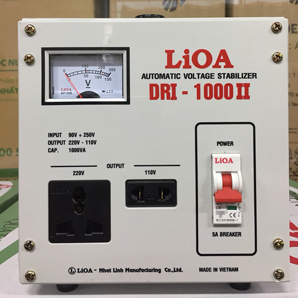 Ổn áp 1KG 1 Ký 1KW hay còn máy ổn áp LiOA 1KVA 1 pha. Máy hiện có 3 model là Lioa SH-1000II, DRI-1000II, DRII-1000II. Với mỗi model là 1 dải điện áp đầu vào, dải càng rộng giá thành càng cao.