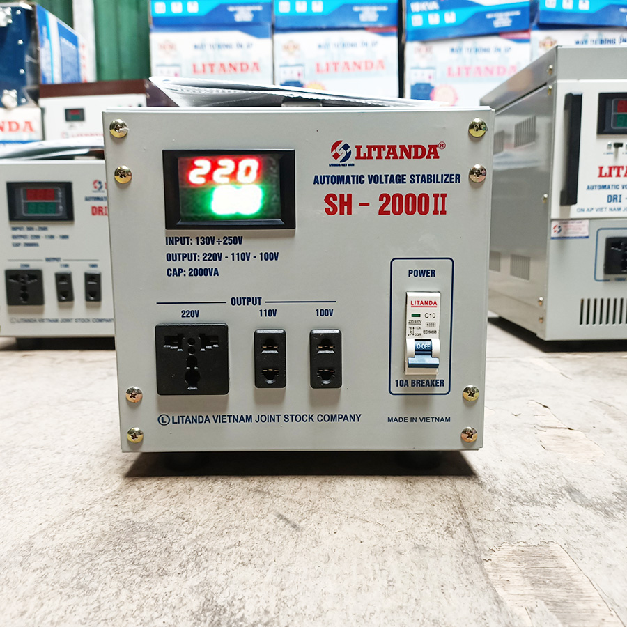 Ổn áp Litanda SH-2000 II có dải điện áp vào 150V-250V, điện áp ra 220V và 100V. Sản phẩm phù hợp sử dụng ở những nơi điện áp không quá thấp. Ở những xa tram, xa khu dân cư mọi người nên cân nhắc sử dụng model DRII-2000 II dải điện áp vào 90V-250V.