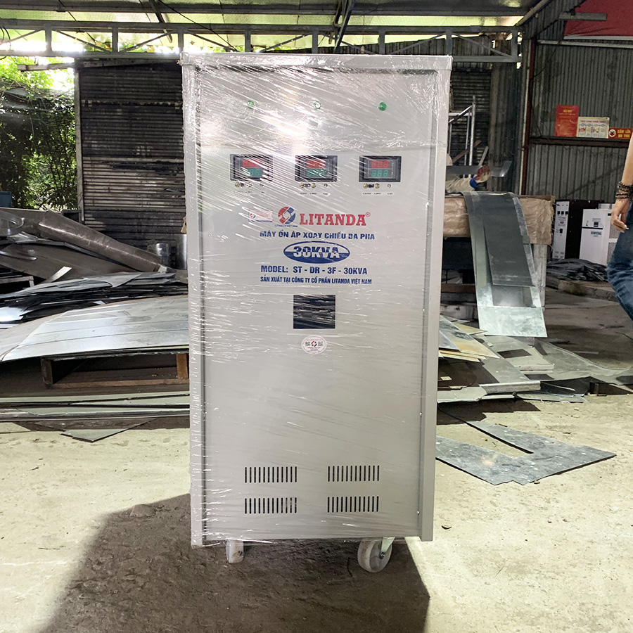 Máy ổn áp Litanda 30KVA 3 pha chính hãng thế hệ mới trang bị đồng hồ số Led điện tử. Sản phẩm thế hệ mới thêm có chức năng kiêm tra điện áp đầu vào và chức năng tùy chỉnh điện áp trực tiếp bên ngoài.