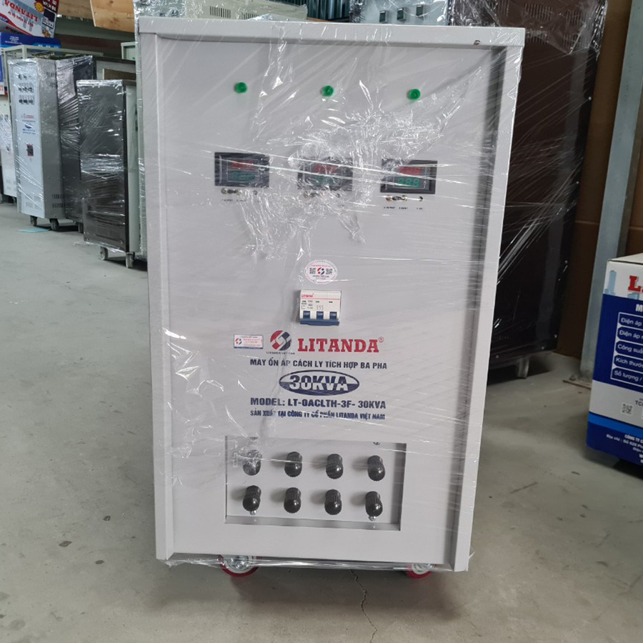 Máy ổn áp cách ly LITANDA 30KVA 3 pha được tích hợp 2 chức năng ổn áp và cách điện chống giật. Máy được dùng cho điện 3 pha không trung tính. Sản phẩm đảm bảo nguồn điện ổn định và an toàn khi vô tình trạm vào nguồn điện. Sản phẩm được sử dụng nhiều tại các cơ quan, đơn vị, doanh nghiệp, hộ gia đình…