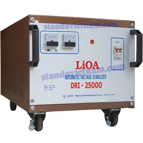 Ổn áp Lioa 25KVA, Model DRI-25000 có dải điện áp vào là 90V-250V, hai nguồn điện ra là 220V và 110V. Ổn áp Lioa là thương hiệu đã có từ lâu, máy chạy ổn định, luôn cho điện áp ra chuẩn nên được nhiều người tin dùng.