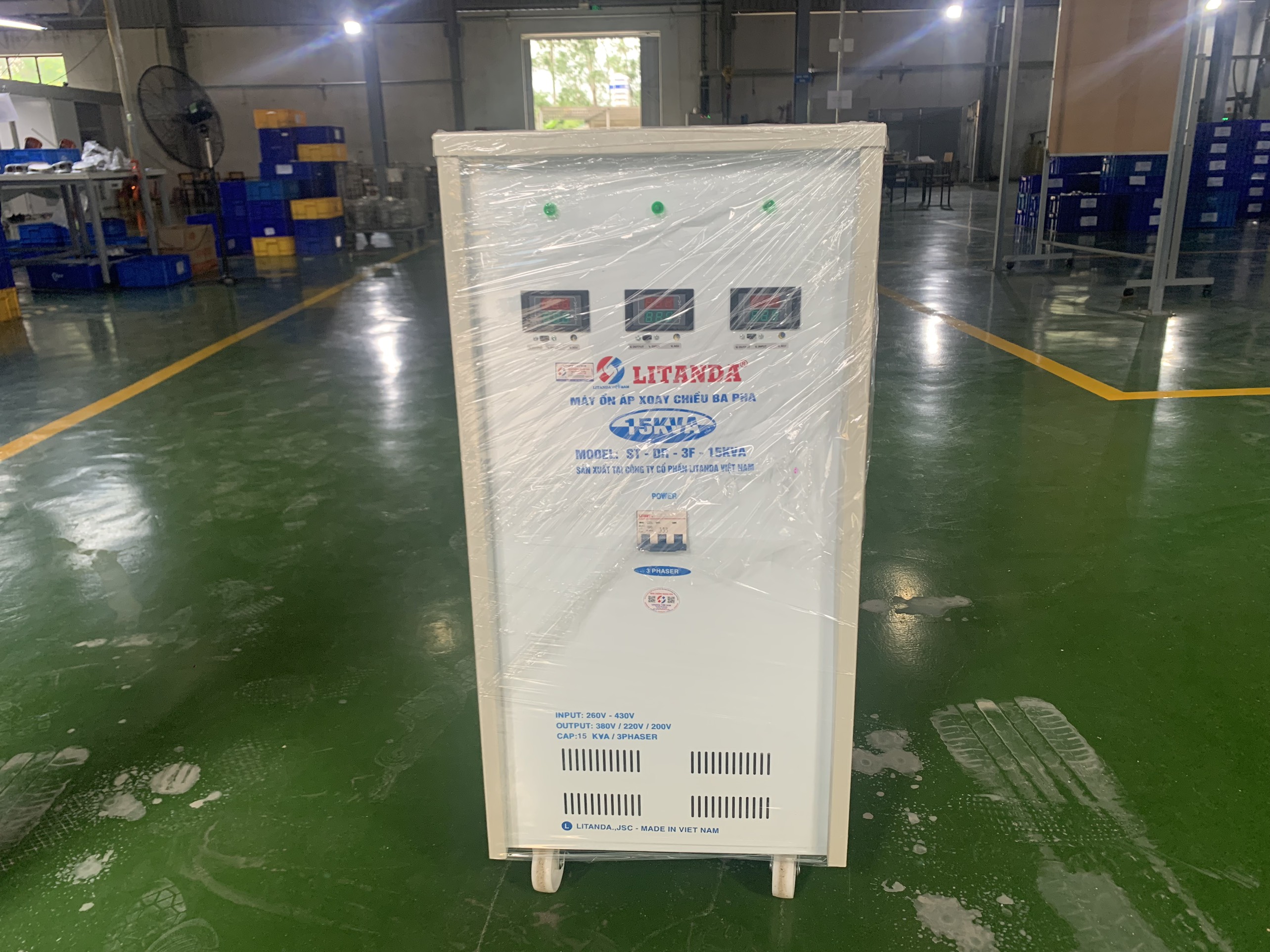 Cung cấp ổn áp Litanda 15KVA 3 pha dải 260V-430V thế hệ mới dây đồng 100% chính hãng. Sản xuất tại công ty cổ phần Litanda Việt Nam Máy được tích hợp ổn áp biến áp có đủ 3 đầu ra 380V/220V/200V 3 pha.