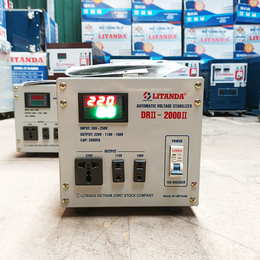 Máy ổn áp LiTanda 2KVA 1 pha đời mới model DRII-2000II dải 50V-250V ra đời được sử dụng cho các khu vực điện không quá yếu như các thành phố lớn: thành phố Hồ Chí Minh, thành phố Hà Nội…để đảm bảo các thiết bị sử dụng điện trong gia đình bạn.