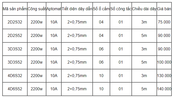 Loại ổ cắm phổ thông chỉ có 2 chấu thông thường, có từ 3-6 lỗ. Chiều dài của ổ thường từ 3m-5m. Do đó giá của loại này rẻ hơn so với các loại khác.