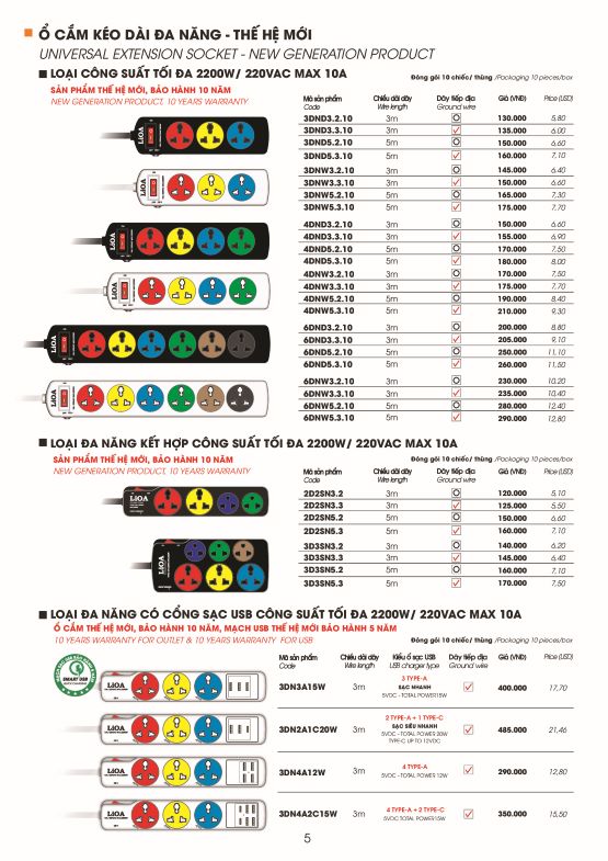 LiOA làm trùm ở dòng sản phẩm này khi sản xuất đủ loại ổ cắm kéo dài. Phục vụ được đông đảo khách hàng ở mọi phân khúc, mọi thị trường.